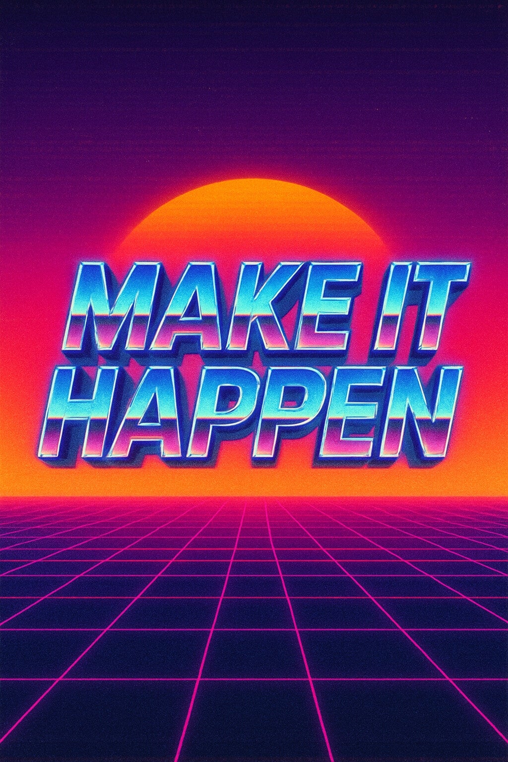 A bold 80s-inspired motivational poster with electric gradients, chrome lettering, and a synthwave horizon. The vibrant neon palette channels momentum, ambition, and forward motion. Designed for creative spaces, studios, and anyone fueled by relentless drive.