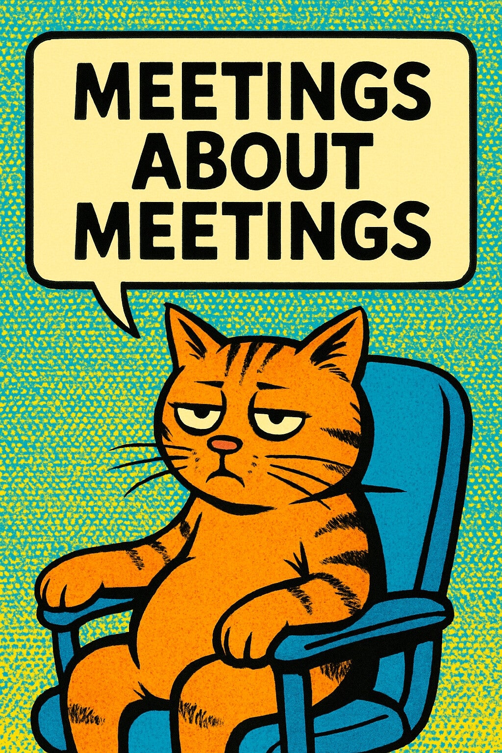 Exhausted cat in an office chair. Bureaucratic recursion distilled into a single expression.