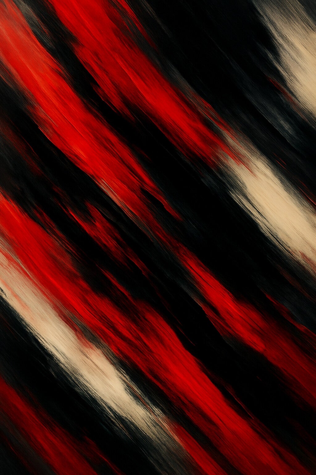 Diagonal bands of red, black, and pale tones. Motion rendered as violent abstraction.
